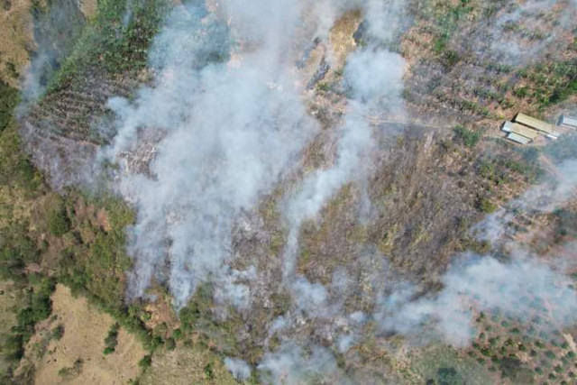 Foto | Cortesía Bomberos de Pácora | LA PATRIA Incendio forestal en la finca finca Providencia del corregimiento de Pácora.