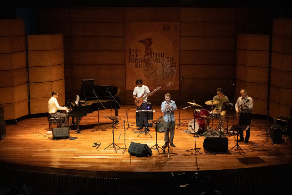 Presentación en el auditorio de la Universidad Nacional, sede Manizales, de la banda de la Universidad de Alabama (Estados Unidos) durante la pasada edición del Festival Colombo Jazz.