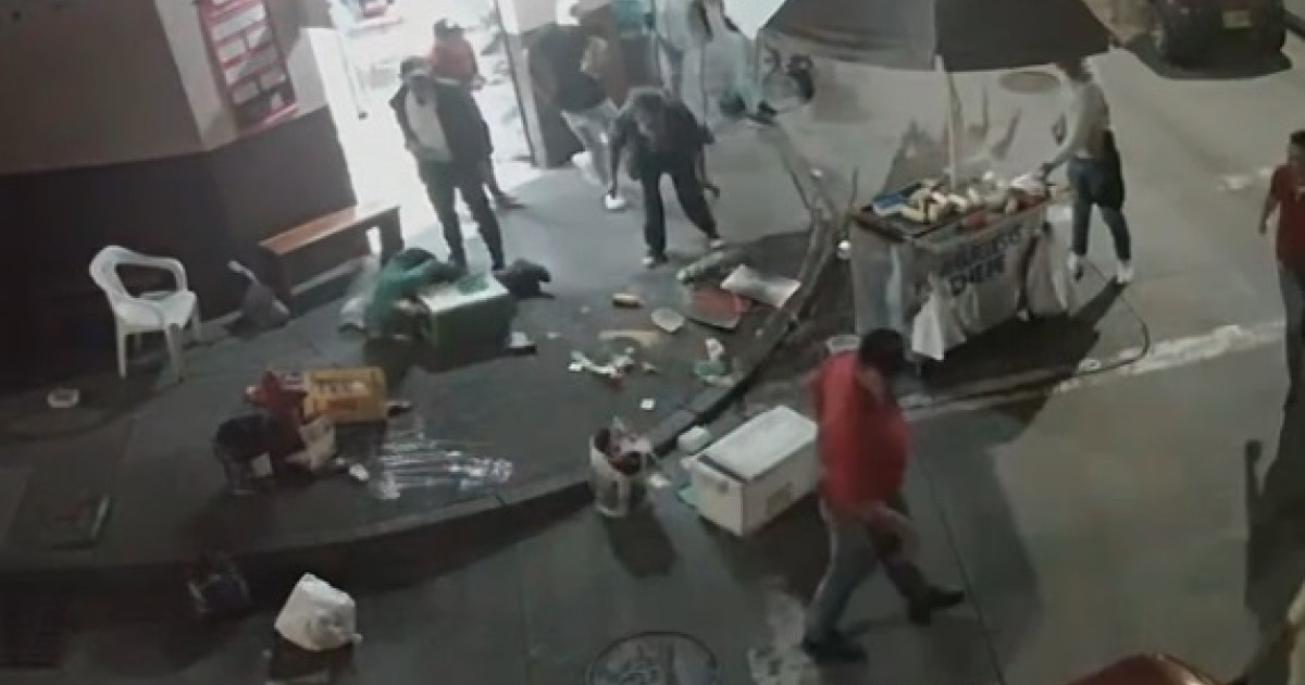 Quedó registrado el momento cuando el sujeto, quien labora como periodista independiente, golpea un puesto de comidas rápidas y lanza contra el piso a la mujer que atendía y a un cliente.