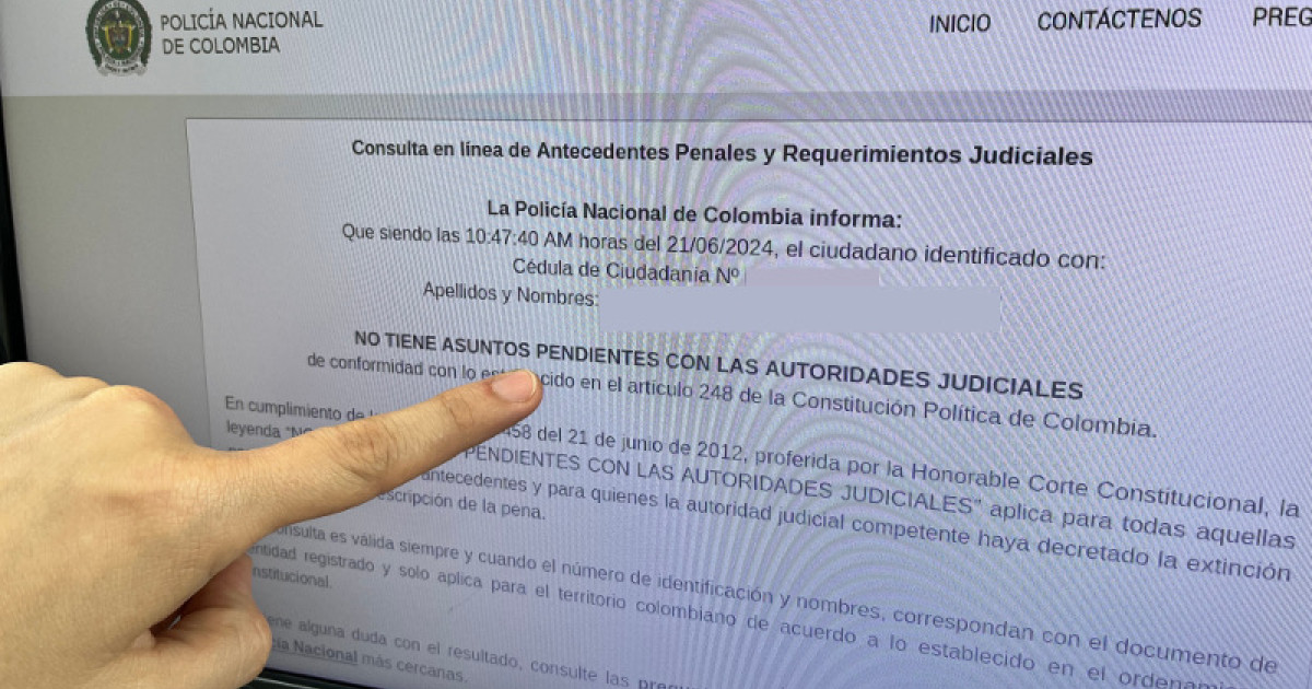 El hombre aseguraba que se daba a entender que en su contra existía un trámite de carácter judicial y se dirigió a la Sijín de la Policía de Caldas para que eliminaran dicho texto, pero allí le indicaron que esa información le correspondía al juzgado.