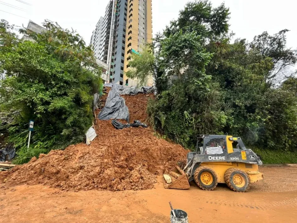 Desde ayer hay un derrumbe en una construcción en la carrera 32 con calle 24, en la conexión del barrio Guamal con Nevado y Linares. El carril hacia el Centro está sin paso.