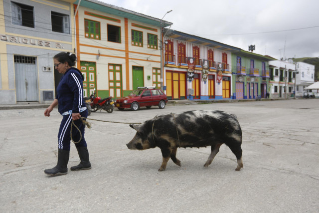 Fotos | EFE | LA PATRIA Un niño monta en un caballo en una calle de Murillo (Tolima).