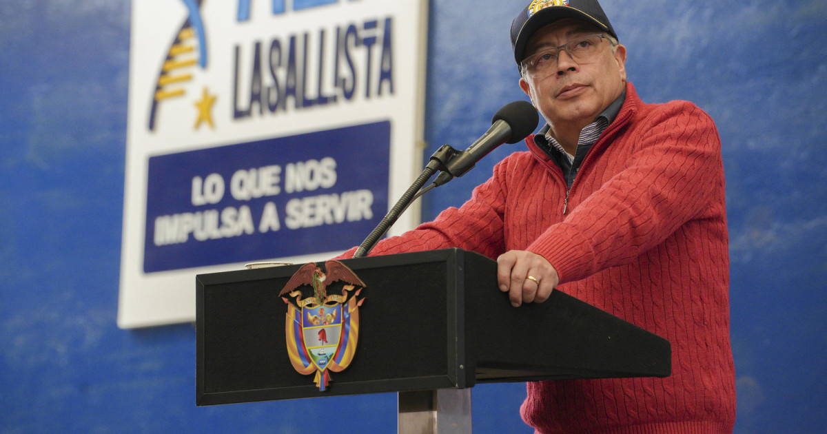Foto | Presidencia | LA PATRIA Gustavo Petro durante un acto público este viernes, en un colegio de Zipaquirá (Colombia). El mandatario pidió exhibir la bandera de la guerrilla del M-19, de la que formó parte en su juventud, en un acto público donde conmemoró el asesinato hace 34 años del excomandante guerrillero Carlos Pizarro.