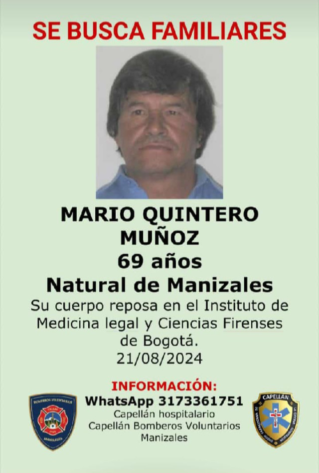 Es el reporte reciente dado por fray Juan Torres sobre personas que están desaparecidas o de las que requieren presencia de familiares en Manizales.