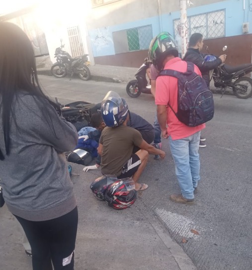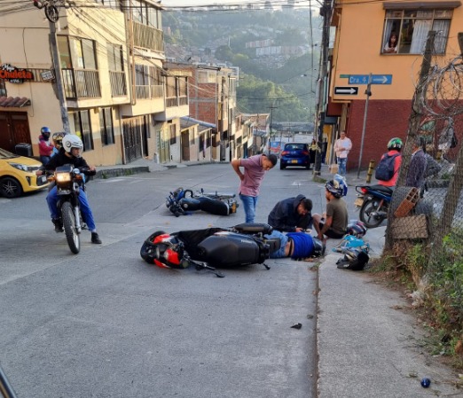 2. En Villamaría se presentó un choque de dos motos. 2 lesionados.