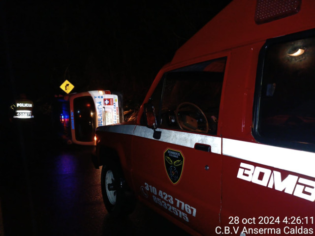 El Cuerpo de Bomberos de Anserma informó que a las 4:00 de la mañana de este lunes (28 de octubre) atendió un siniestro vial en la vía Troncal de Occidente, por Puente Lázaro.